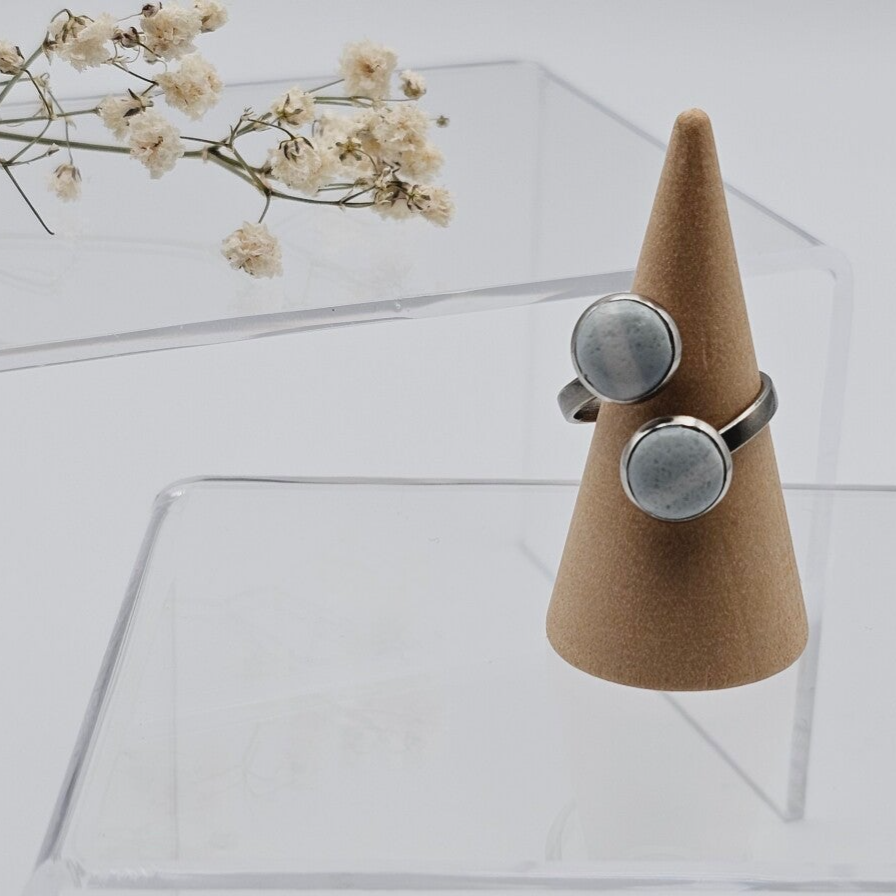 Silberfarbener Ring mit blauem Fimo Design - leicht verstellbar in der Größe.