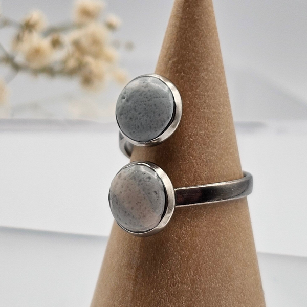 Silberfarbener Ring mit blauem Fimo Design - leicht verstellbar in der Größe.