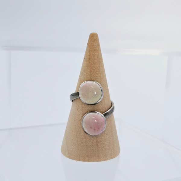 Silberfarbener Ring mit einem Fimo Design aus einem leichten Rosaton und einem Hauch Pastellgelb