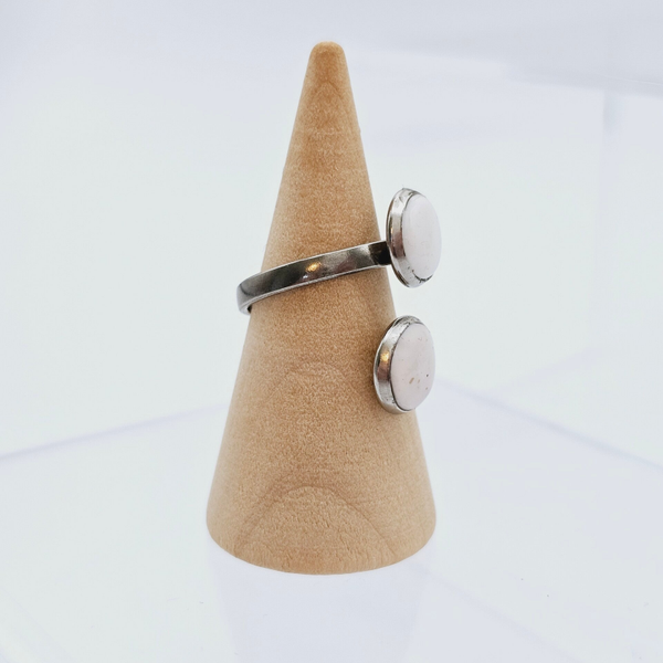 Silberfarbener Ring mit einem Rosa/ Weiß Fimo Design.