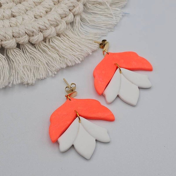 Boho-Blattohrring Weiß/NEON-Orange & Gold