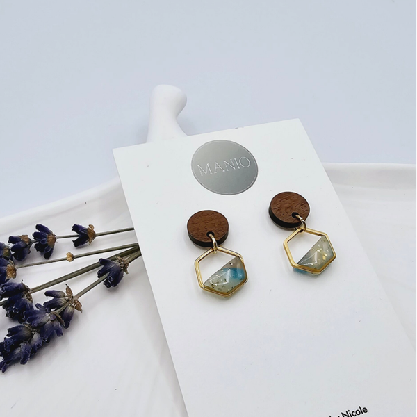 Dieses Paar Ohrringe besteht aus einem Edelstahl-Rohling verschmolzen mit Polymerton, welches mit UV Hartz lackiert ist.