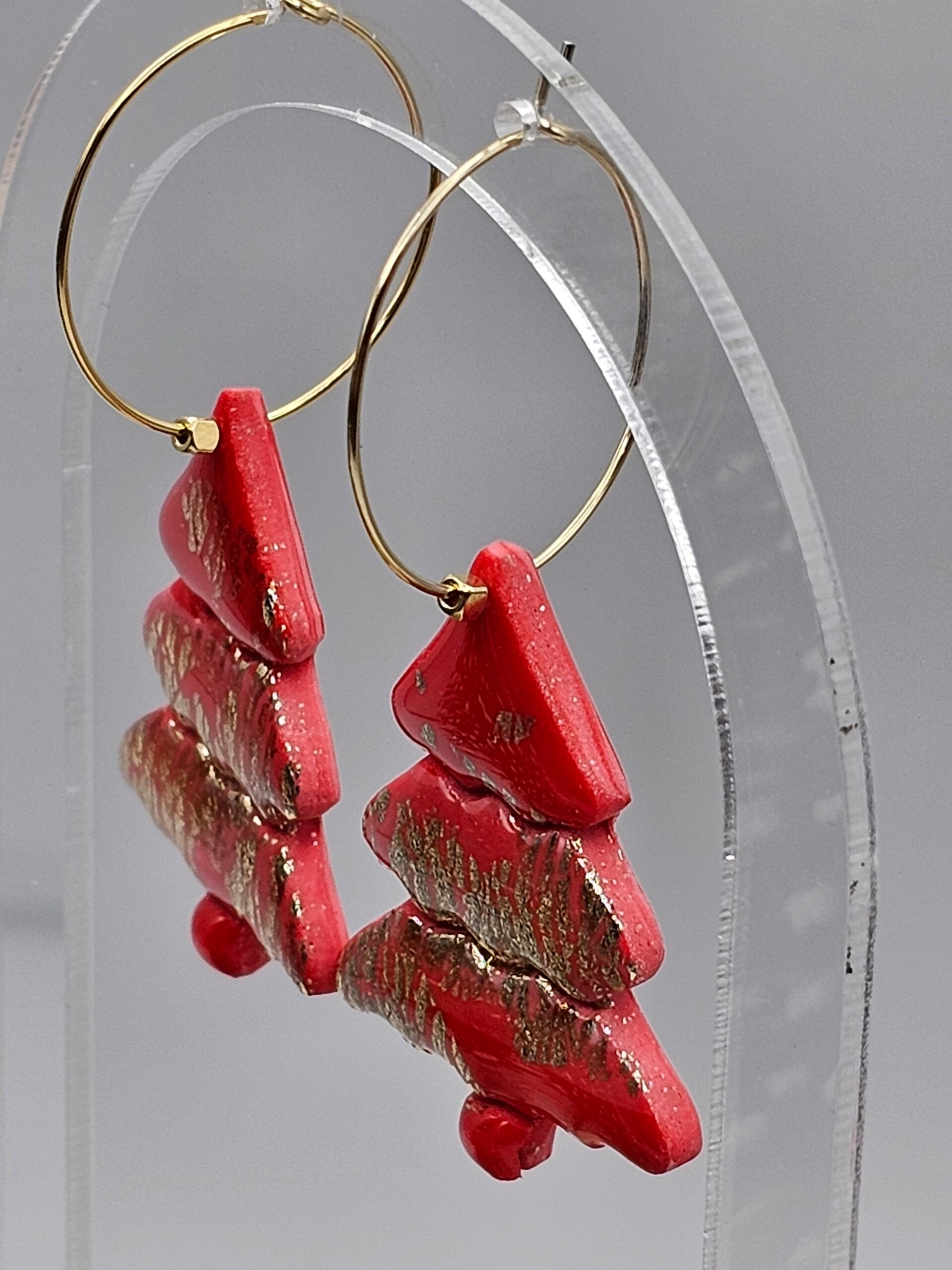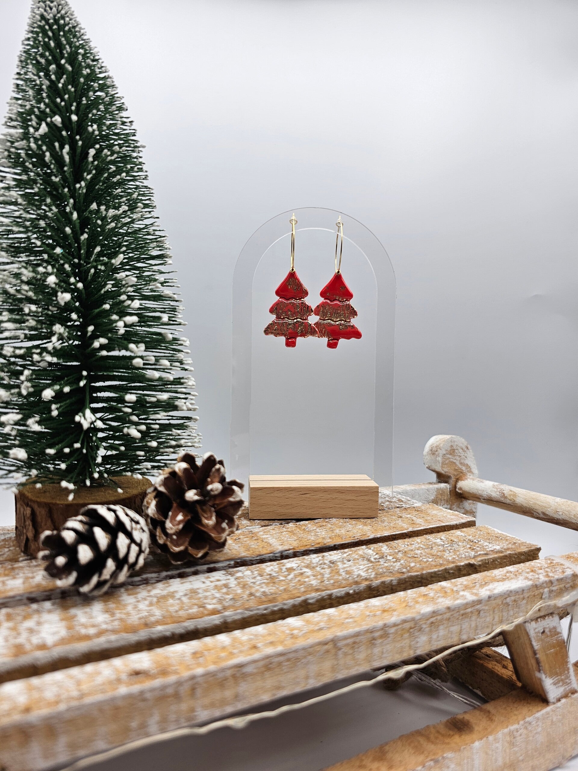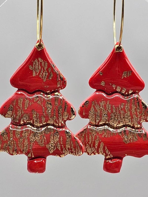 Dieses rote Ohrring-Paar ist das I-Tüpfelschen zu deinem Weihnachts-Outfit. Der rote Weihnachtsbaum-Anhänger mit Goldfolie-Flocken ist ein richtiger Hingucker.