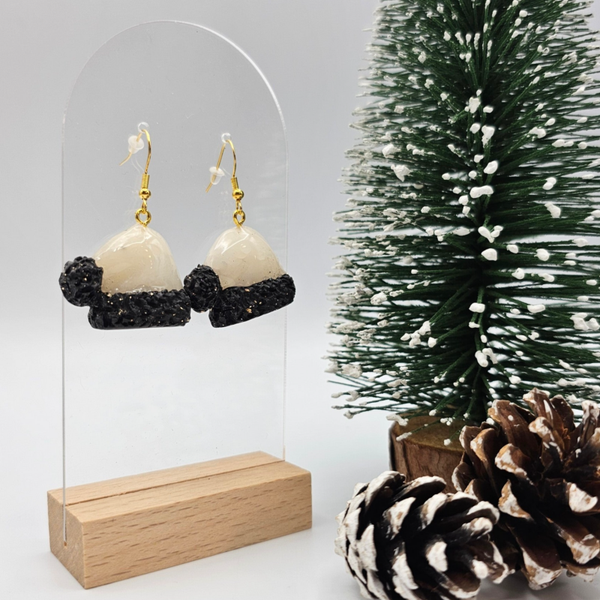 - Die Mützen sind aus transparentem und schwarz/goldenem Polymerton (Fimo). Den Glanz erhalten die Ohrringe durch das UV Hartz.