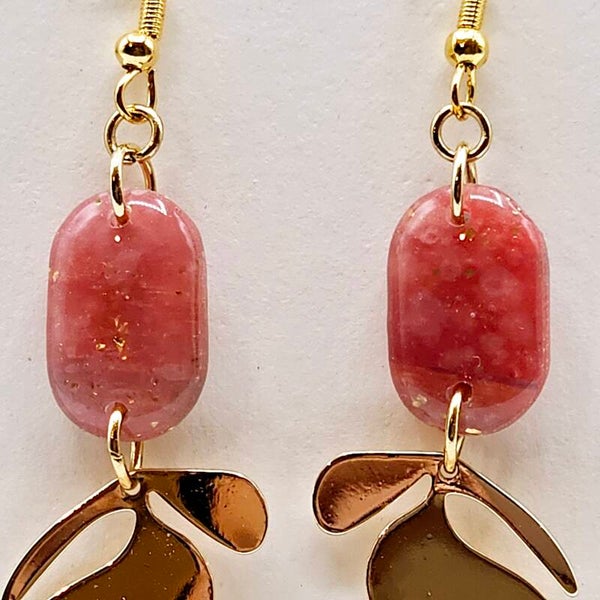 Ohrhänger in Rosa/Gold mit Blatt-Charm.