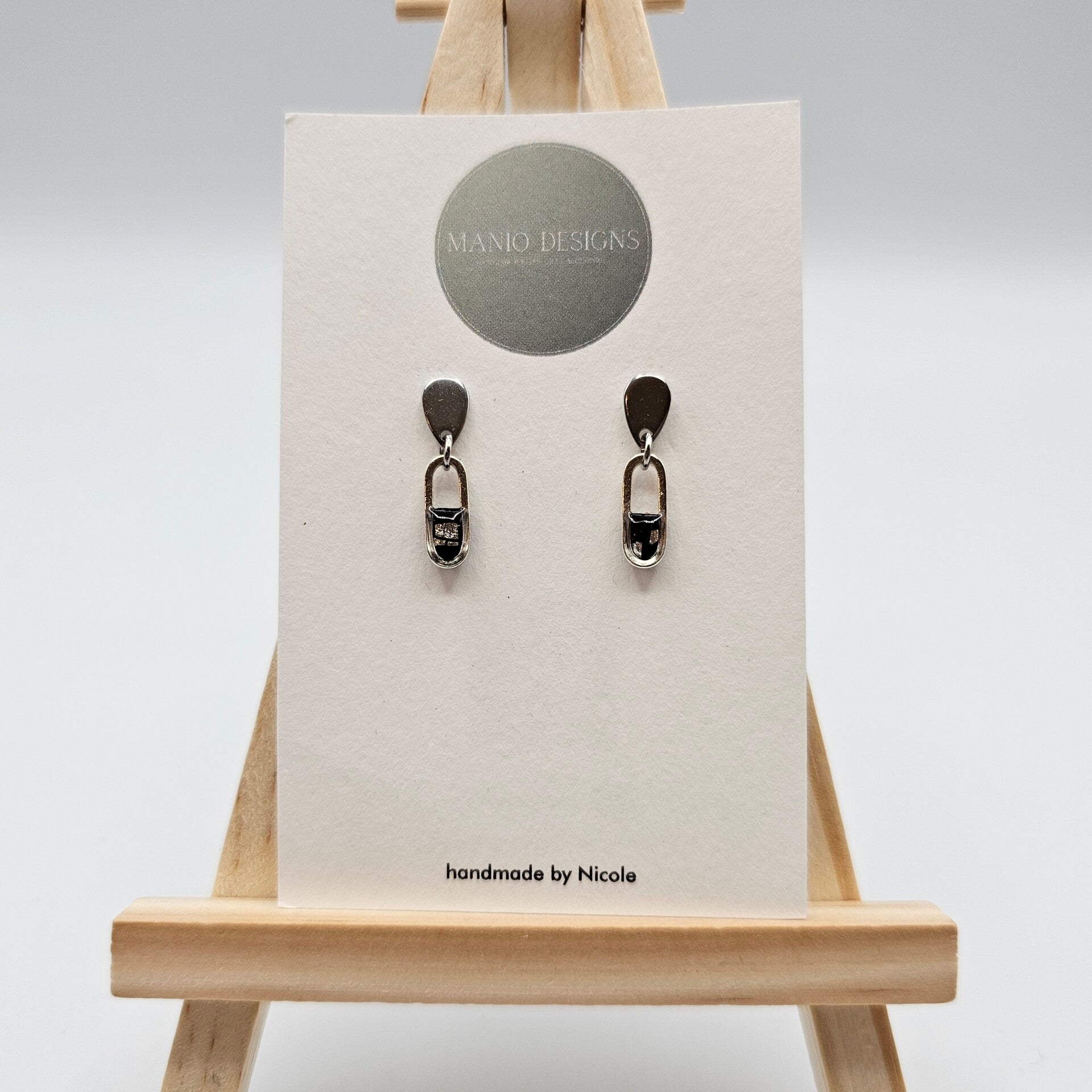 Ovale Ohrringe Schwarz/Silber mit Tropfenohrstecker.