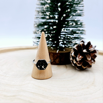 Silberfarbener Hexagon Ring in Schwarz/Silber