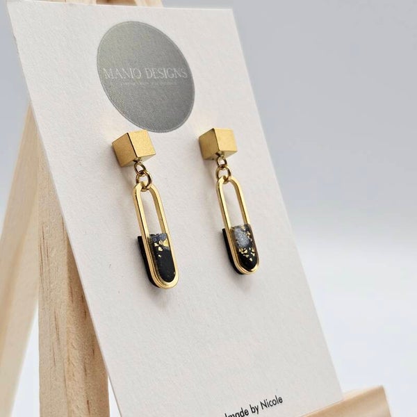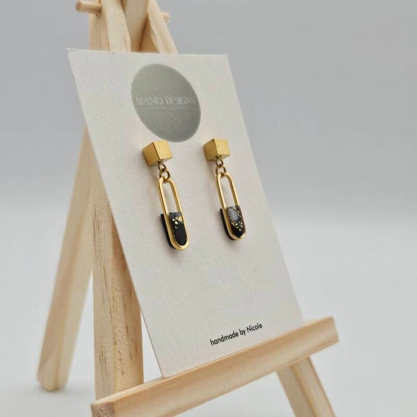 - Die Fimo-Anhänger erhalten den Glanz durch das UV Hartz und sind mit Goldfolie-Flocken verziert.
