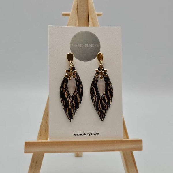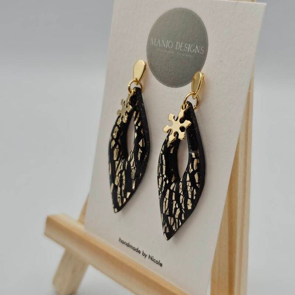 Ovale Ohrringe Schwarz/Gold mit Goldfolie-Flocken.