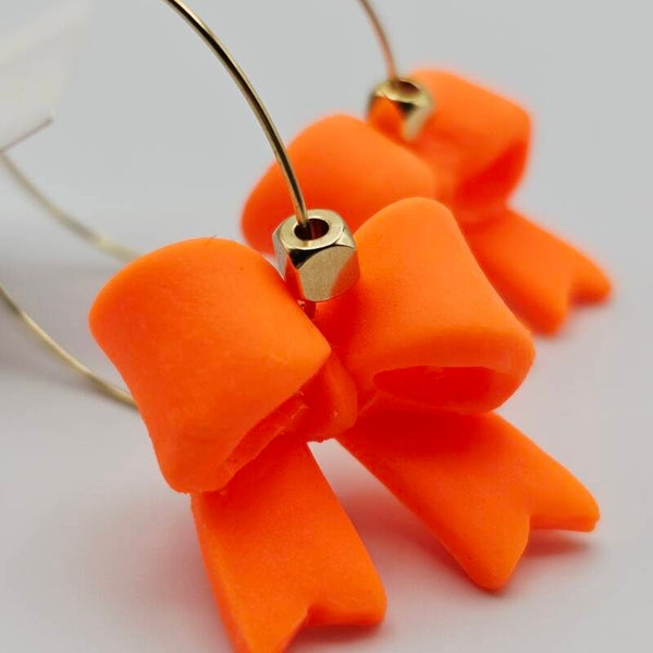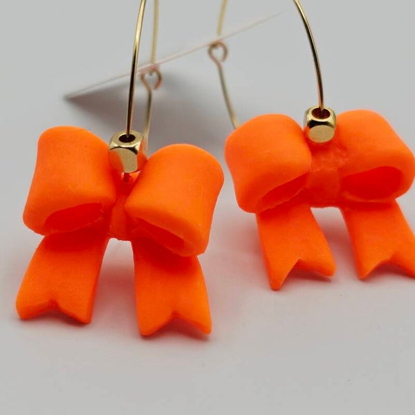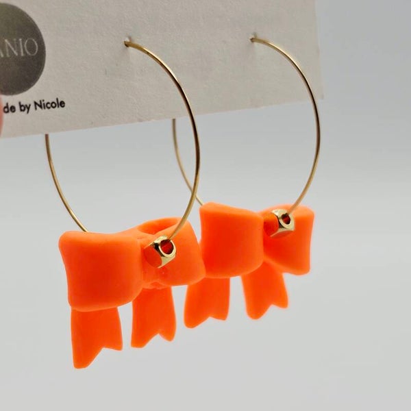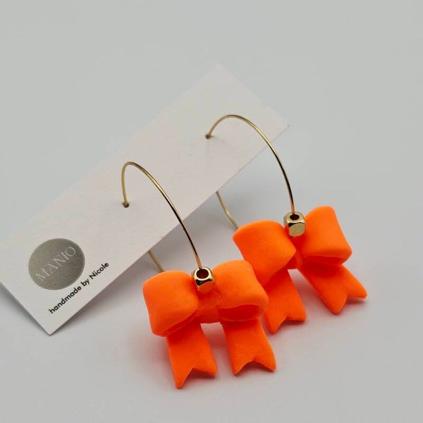 Schleifenohrringe in NEON-Orange, diese Ohrringe peppen dein Outfit so richtig auf, ob im trüben Winter oder im heißen Sommer, dieses Paar ist auf jeden Fall ein Hingucker!
