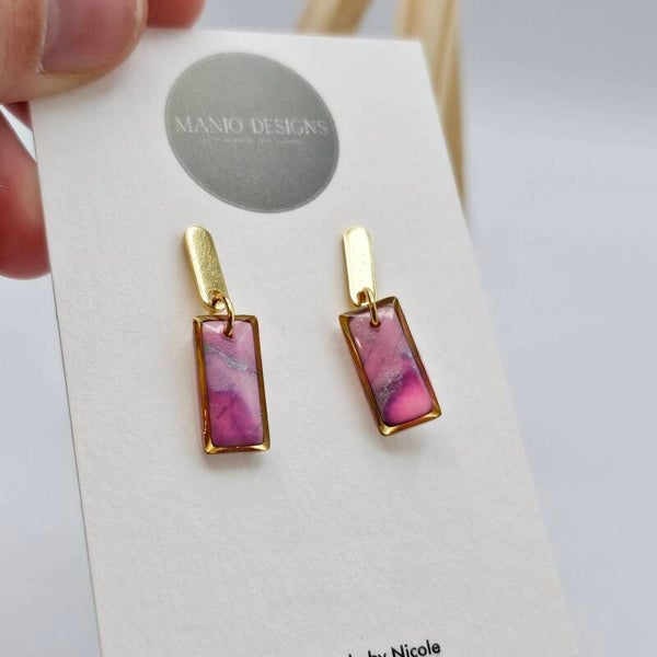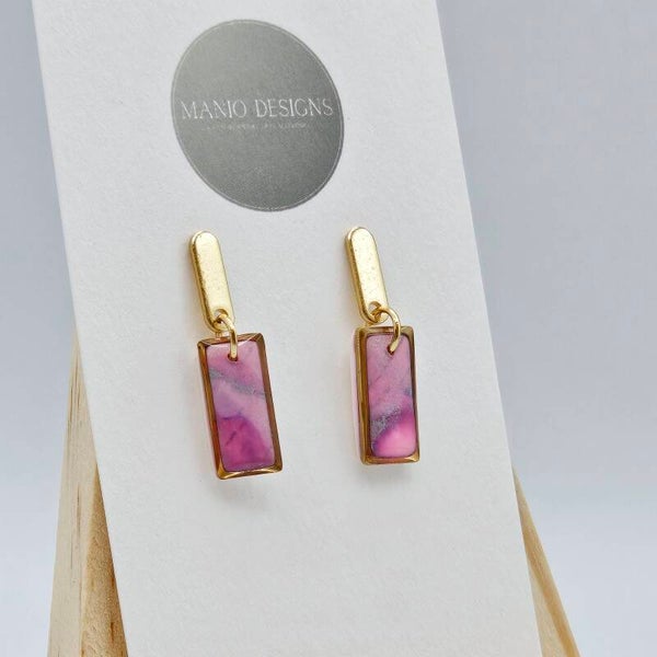 Rechteckige Ohrringe Rosa/Lila - Gold