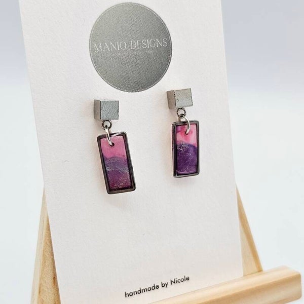 - Das Design ist aus Rosa/Lila Fimo mit einem Silberschimmer & erhält den Glanz durch das UV Hartz.