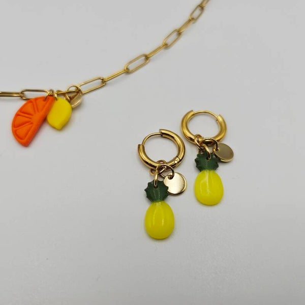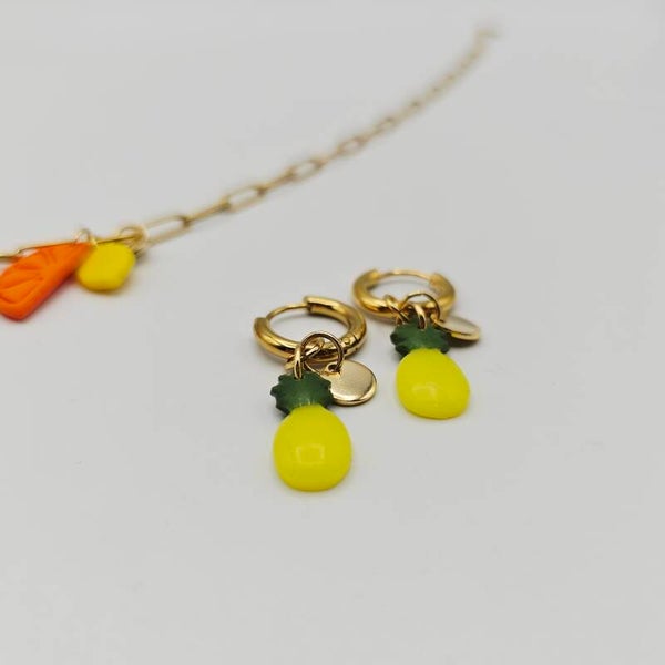Fruity Creolen Ananas mit Goldplättchen Anhänger