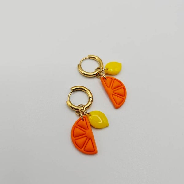 Fruity Creolen mit Orangenschale und Zitronenanhänger