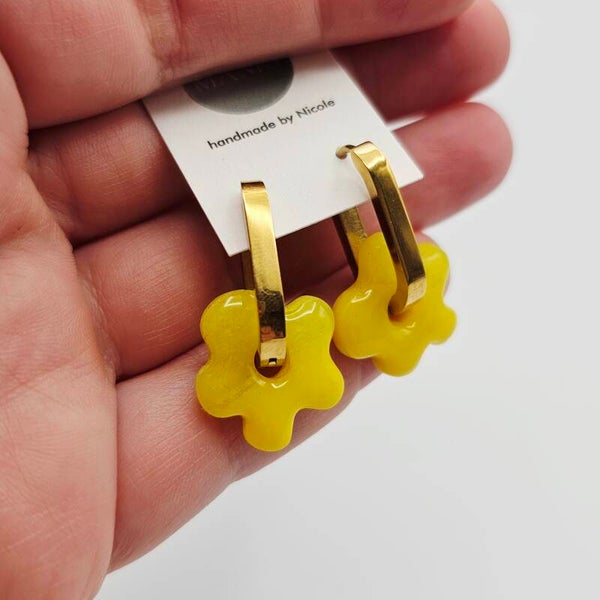 - Die Ohrringe bestehen aus transparentem gelben Fimo.