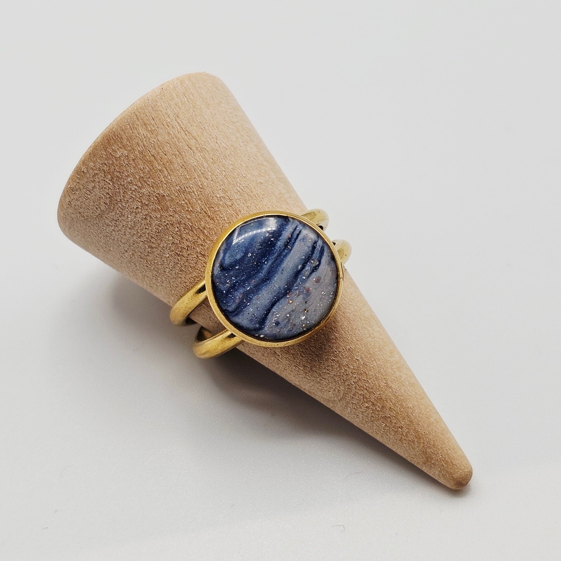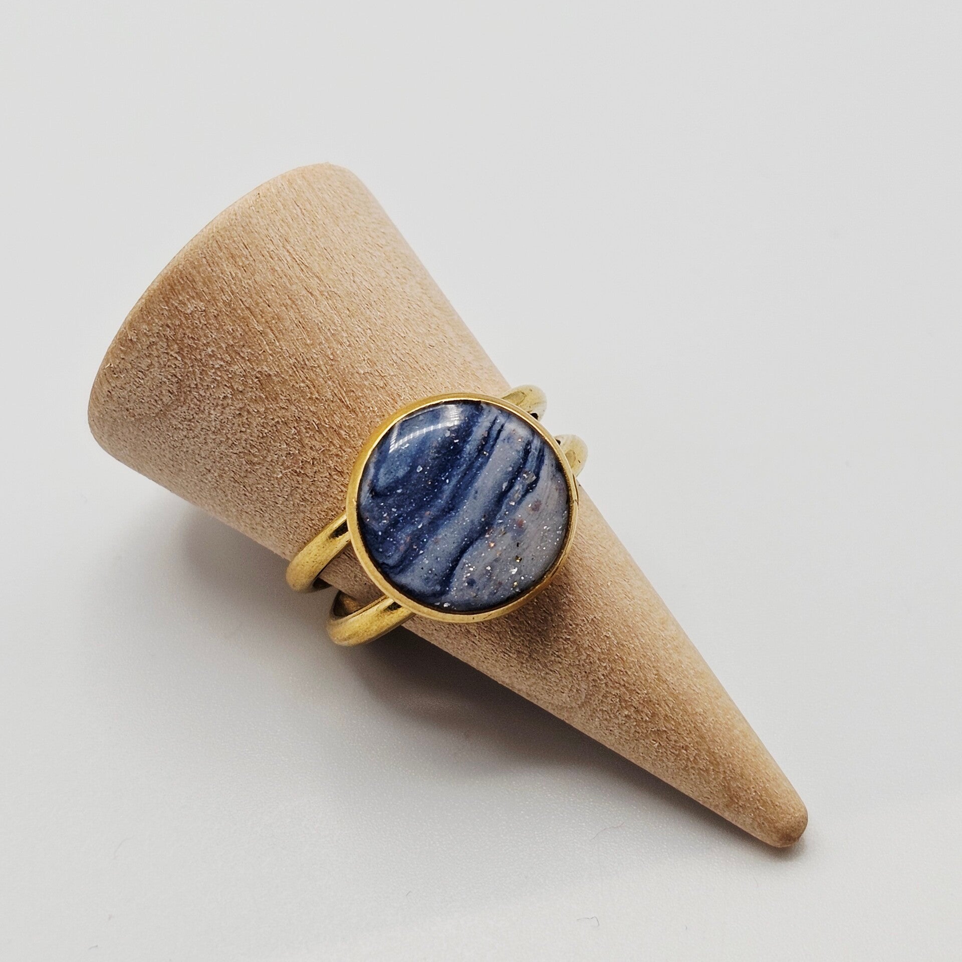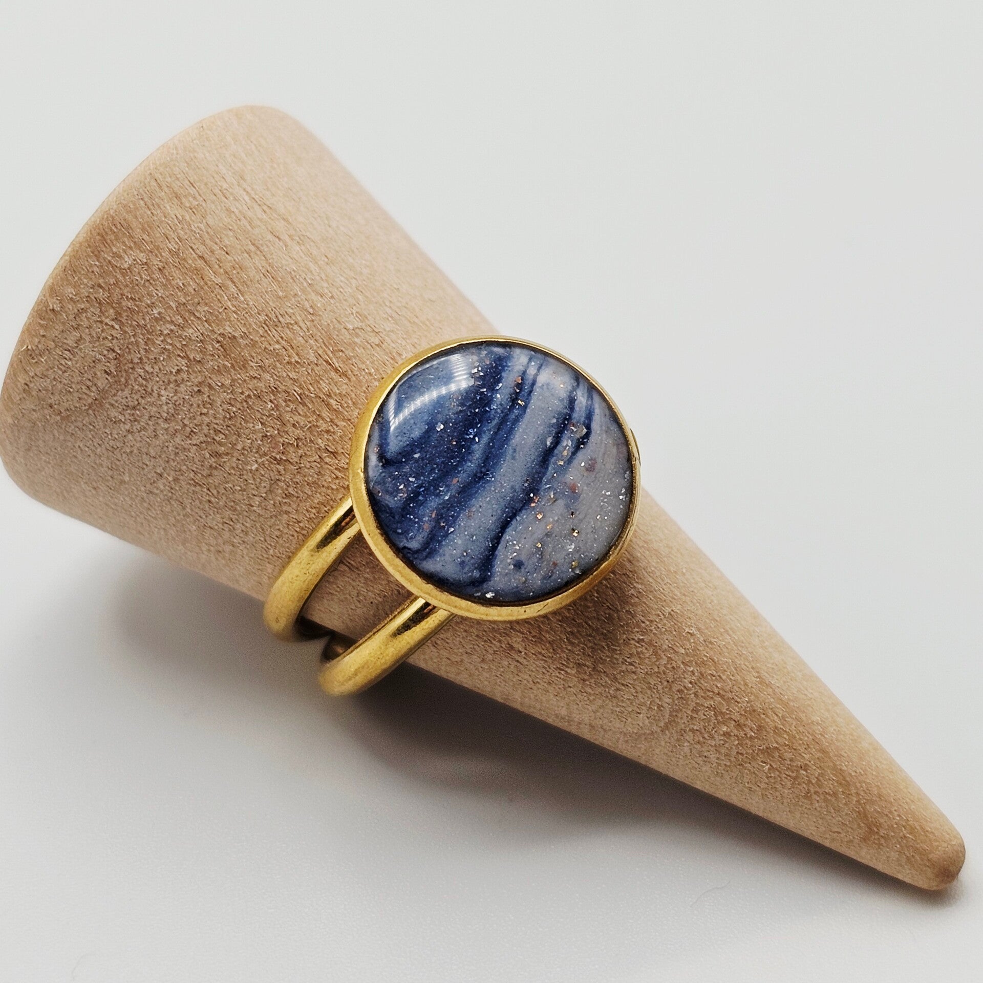Goldfarbener Ring in Blau