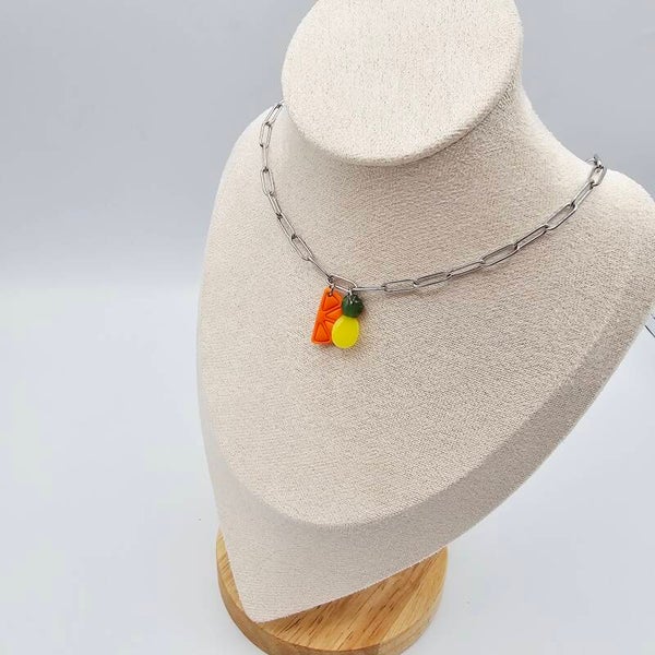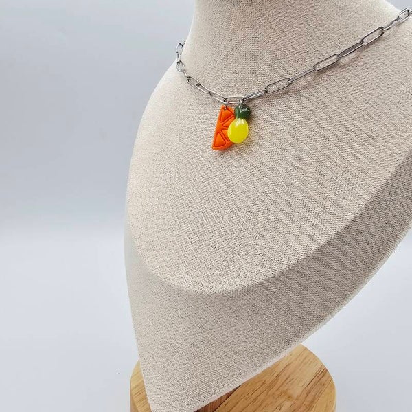 Gliederkette mit Orangenscheibe und Ananasanhänger.