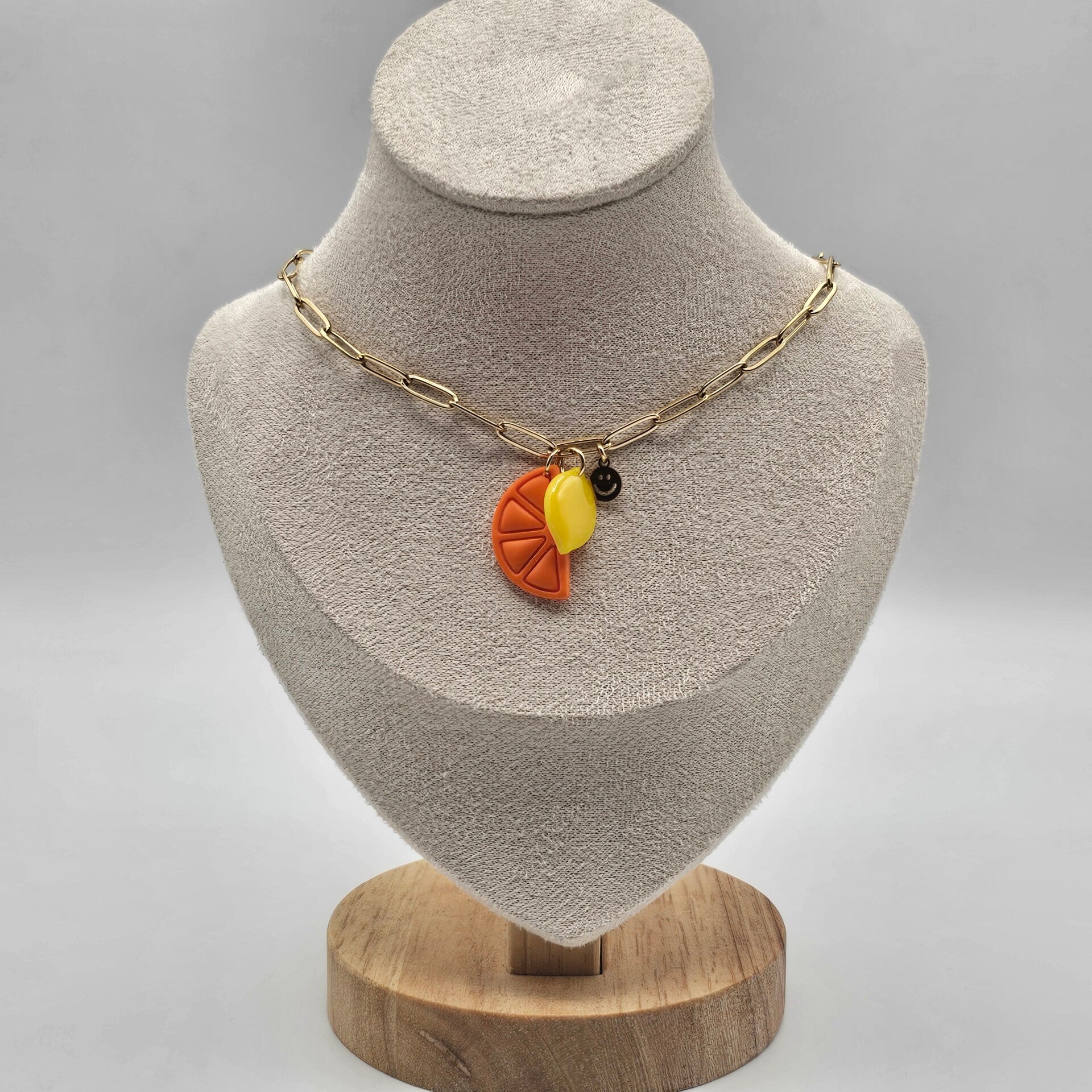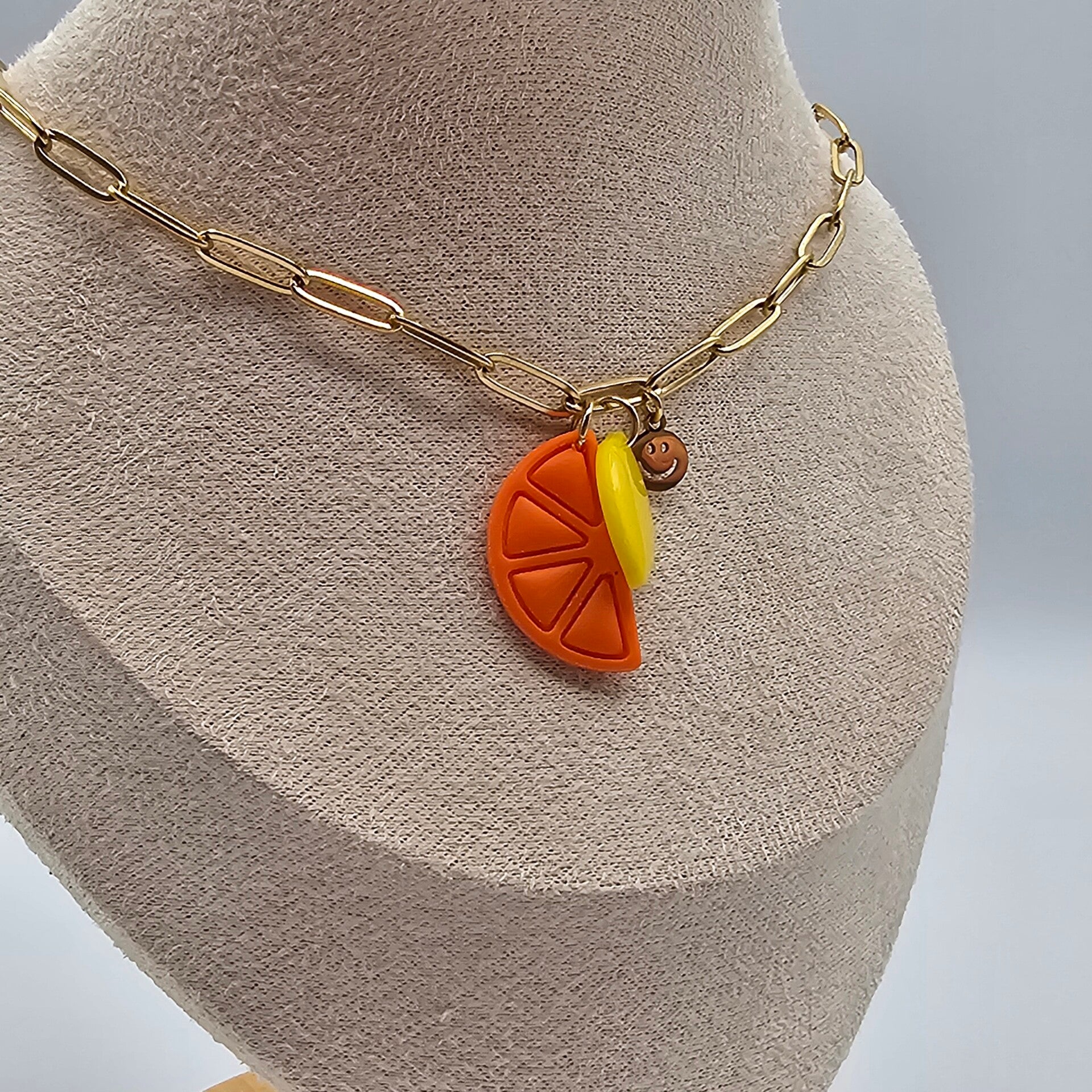 Gliederkette mit Orangenscheibe und Zitronenanhänger