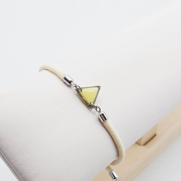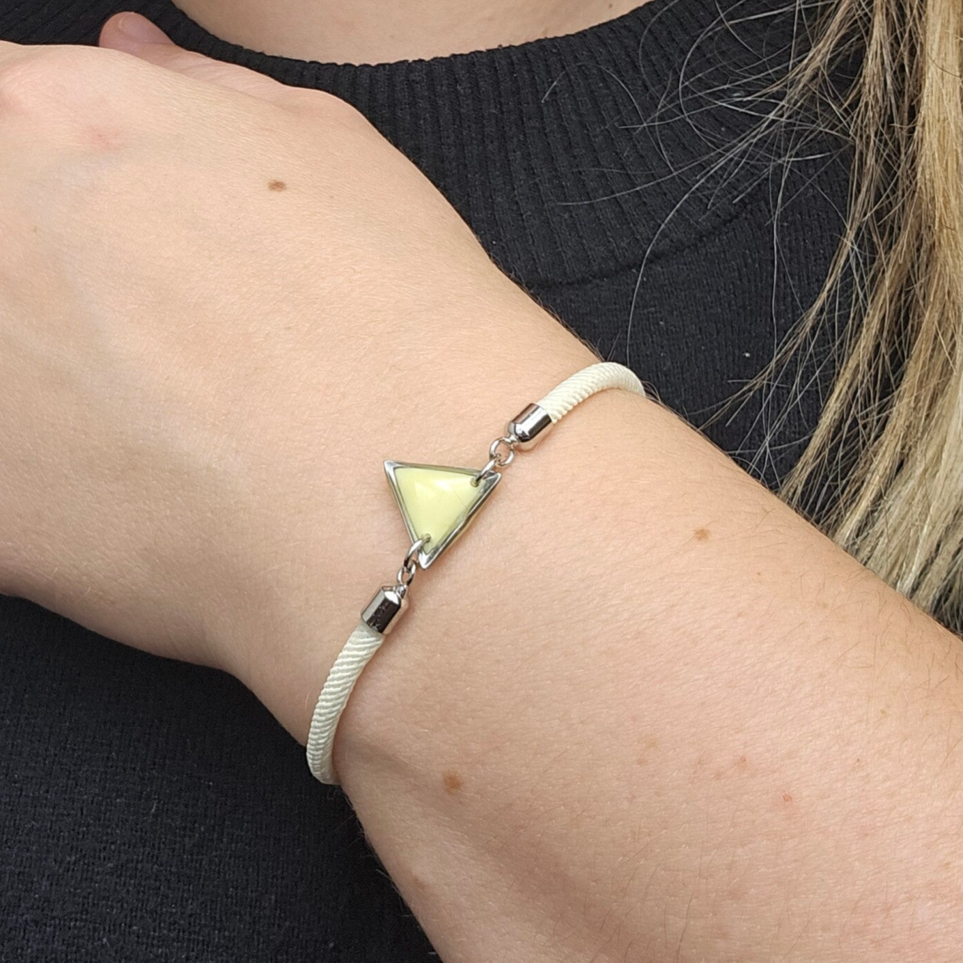 Dieses Armband ist aus einem weißem Kordelarmband und einem pastelgelbem Polymertonanhänger (Fimo).