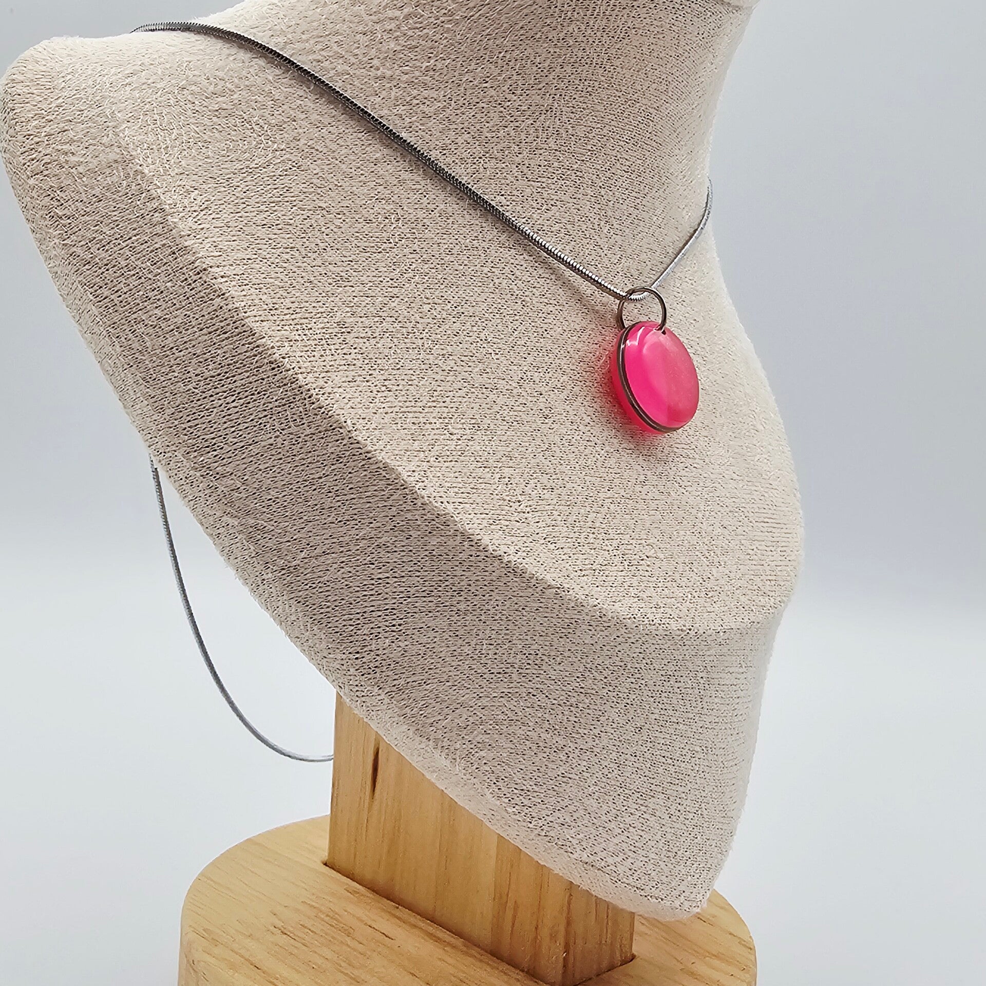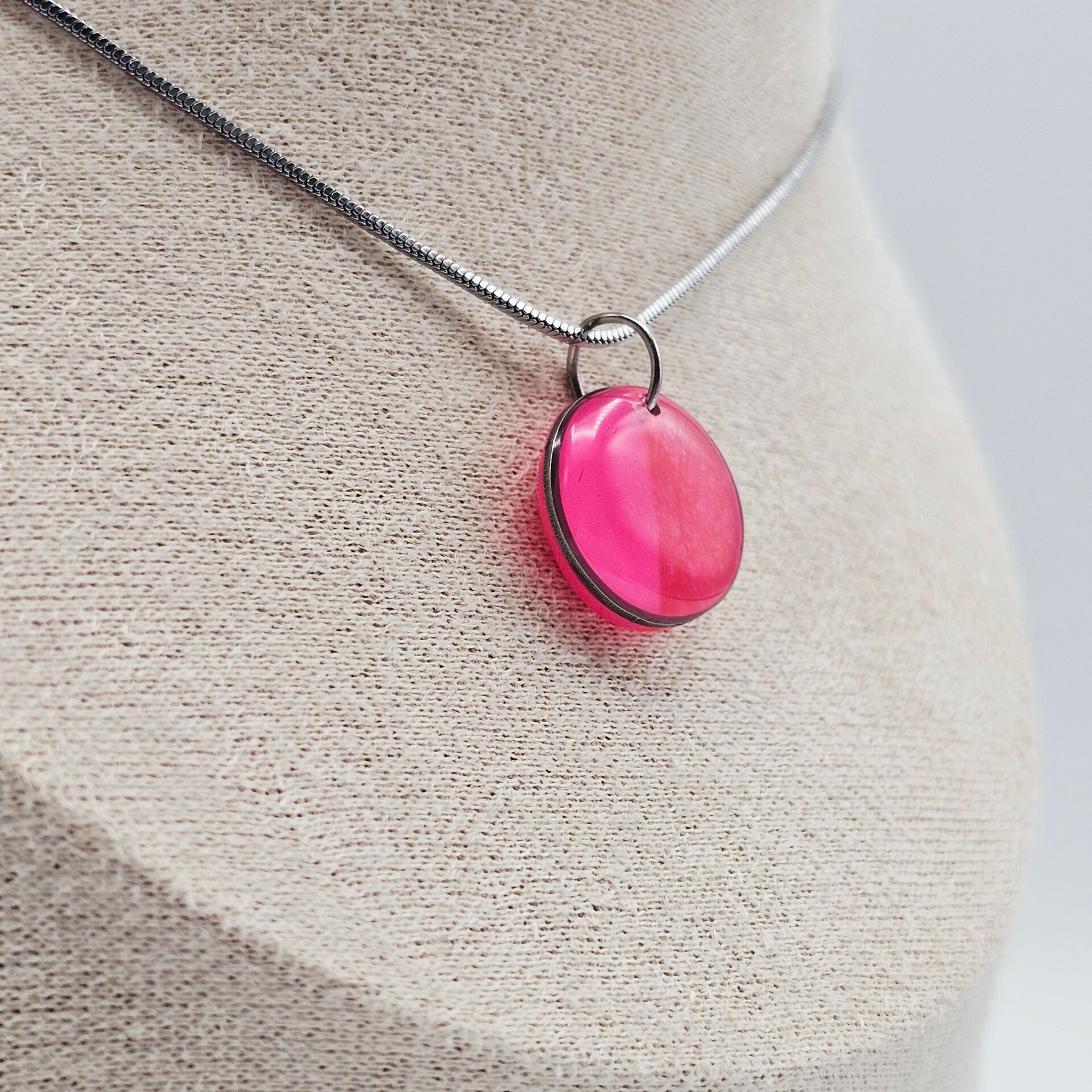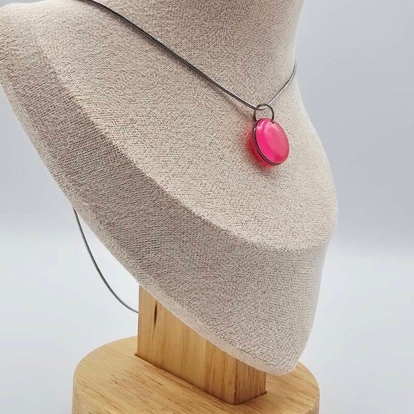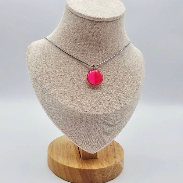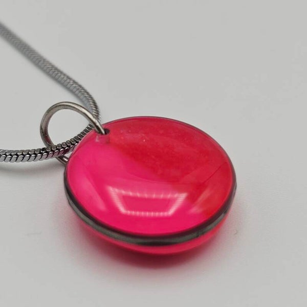 Diese Kette besticht durch den auffälligen runden Anhänger in der Farbe Pink, welcher aus Polymer-Ton hergestellt ist. Dieses Schmuckstück ist der perfekte Begleiter für dein Basic-Outfit.