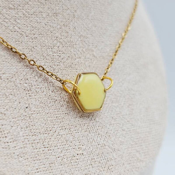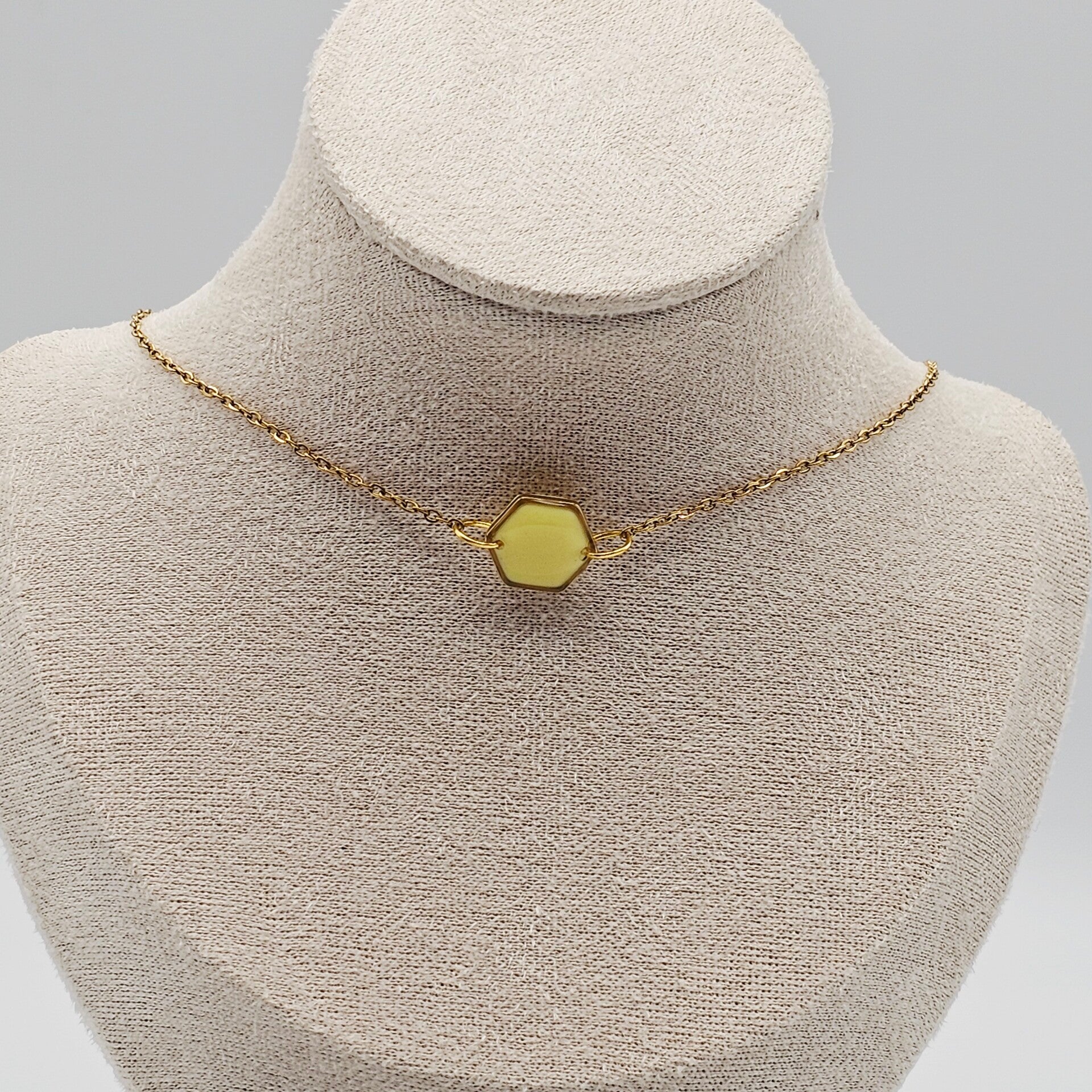 Diese vergoldete Edelstahlkette besticht durch den gelben Hexagon Anhänger.