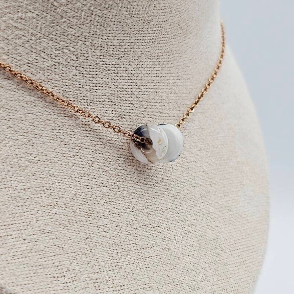 - Material: Roséfarbener Edelstahl, Polymer-Ton (Fimo), UV-Hartz
