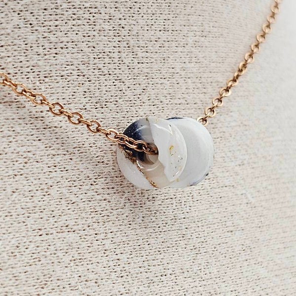 Der handgefertigte Anhänger besteht aus hochwertigem Polymerton in einer eleganten Marmoroptik aus Weiß, Blau & transparentem Fimo sowie feinen Goldfolieflocken. Jedes Stück ist ein Unikat und zeichnet sich durch seine individuelle Farbverteilung aus.