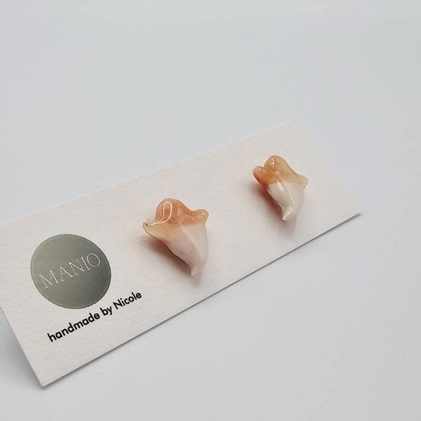 - Material: Vergoldeter Edelstahlstecker, Polymer-Ton (Fimo), UV-Hartz