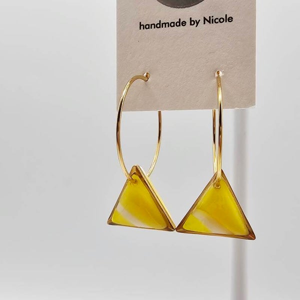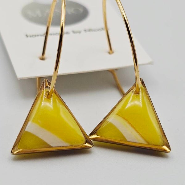 Goldene Creolen mit gelben Dreiecksanhängern aus Polymer-Ton – Modern, handgefertigt & strahlend