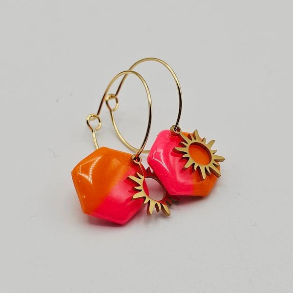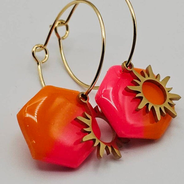 Zweifarbige Creolen in Pink & Orange mit Sonne-Element ☀️