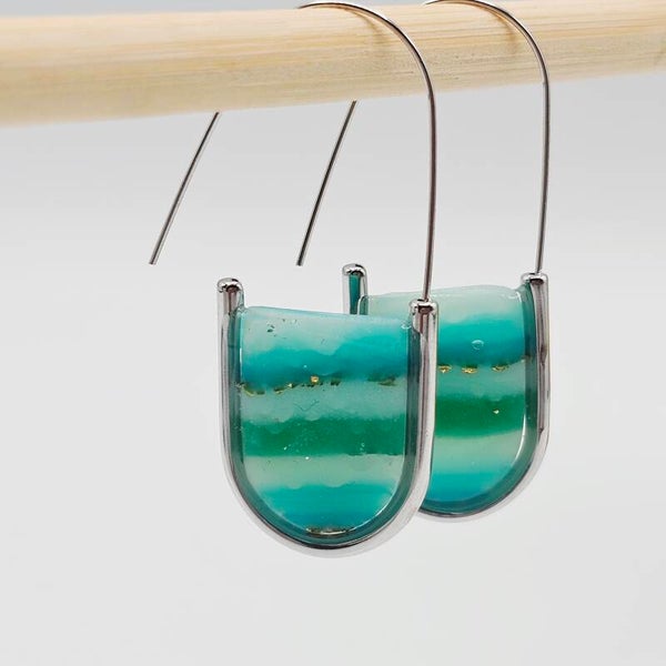 Ohrringe in Meeresgrün mit silberfarbenem Rahmen
