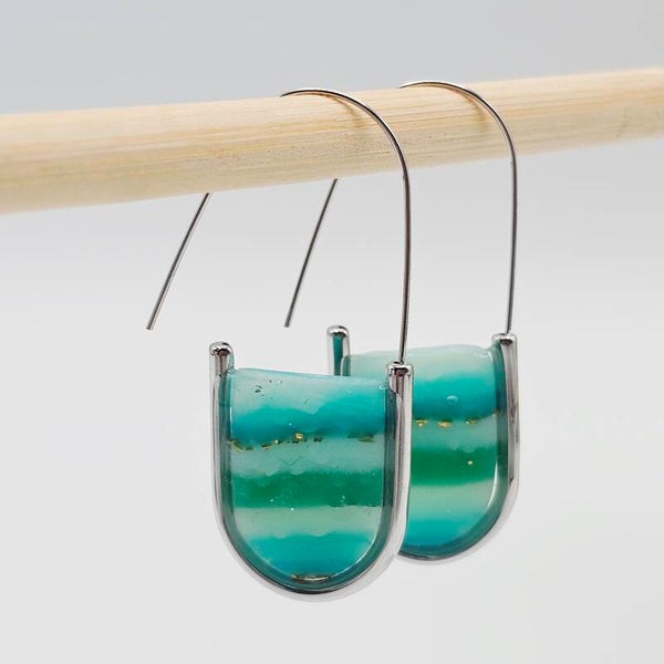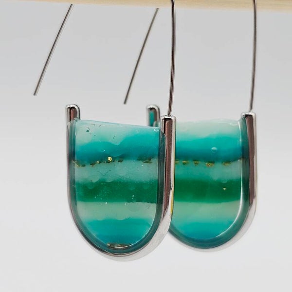 Jedes Paar wird sorgfältig von Hand gefertigt – kleine Unterschiede im Farbverlauf machen jedes Stück zu einem echten Unikat. Das harmonische Zusammenspiel aus Meeresfarben und Metallic-Schimmer erinnert an das Spiel von Sonne und Wasser – ein ideales Accessoire für alle, die das Besondere lieben.