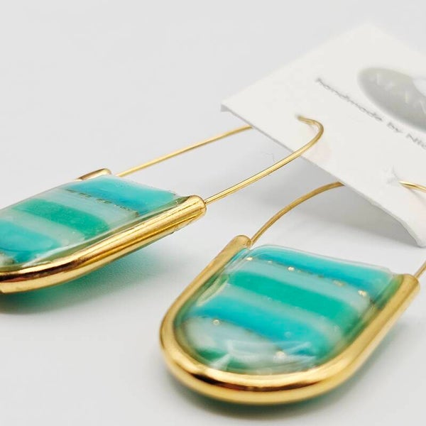 Jedes Paar wird sorgfältig von Hand gefertigt – kleine Unterschiede im Farbverlauf machen jedes Stück zu einem echten Unikat. Das harmonische Zusammenspiel aus Meeresfarben und Metallic-Schimmer erinnert an das Spiel von Sonne und Wasser – ein ideales Accessoire für alle, die das Besondere lieben.
