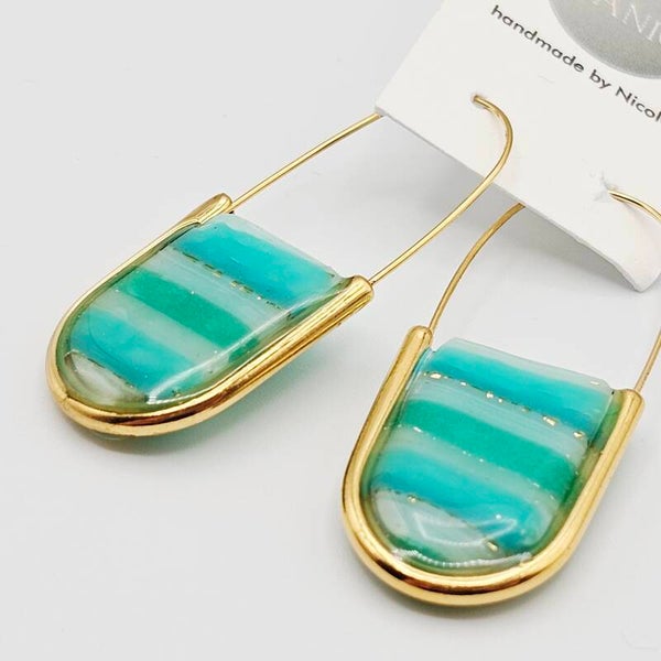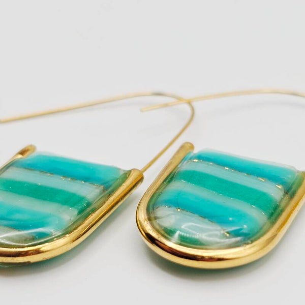 Ohrringe in Meeresgrün mit goldfarbenem Rahmen