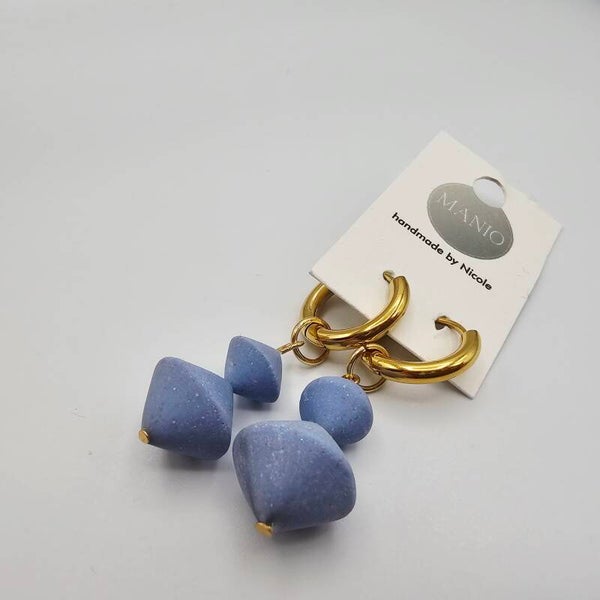 Ohrringe mit blauen geometrischen Formen mit goldfarbenen Creolen
