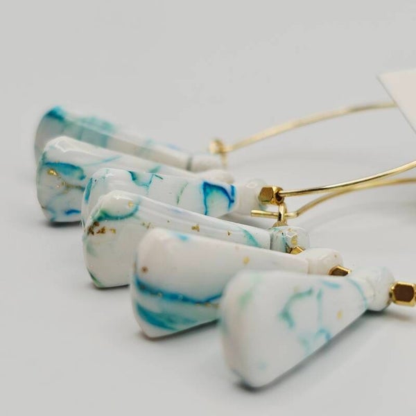 Ohrringe in Weiß mit zarten blau-/türkisen Maserungen & Goldakzenten